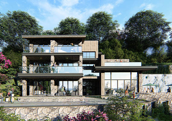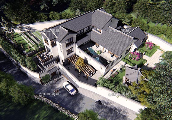 占地面積 261.3㎡ 土建造價 100.0萬 山地中式別墅
