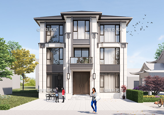 占地面積 140.8㎡ 土建造價 50.0萬 三層中式小別院